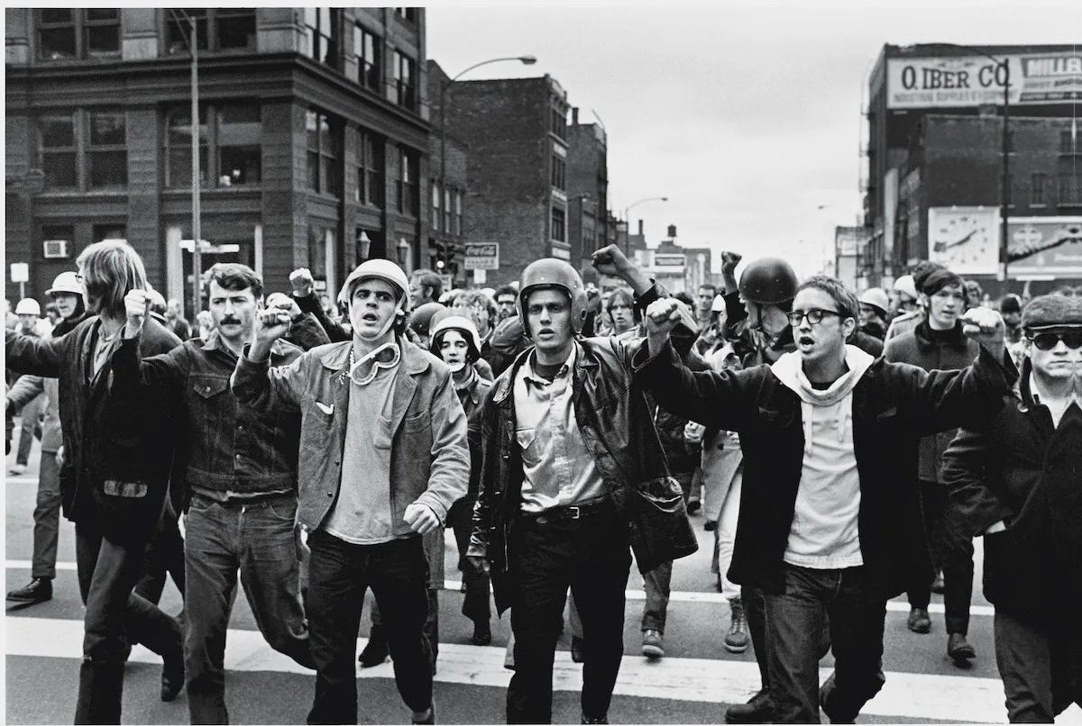 In their desire for the American dream and their own personal movie-star life, the Greatest Generation created a vast generation of teenagers and young adults that grew up not being taught by their elders- but being told what society should be like. The mist surrounding progressivism and the Dionysian that originated from the Apollonian drivers’ near unanimous presence in the structures of power led to ideological curiosity among the youth. The 1960s gave the Boomers their first gasp of influence, as the rising star of the public spirit, paired with the immense size of the generation compared to their parents. The Dionysian spirit was ignited, and the desire for overturning of the powers that be as an act of maturing and overcoming a past trauma took root. The Aresian first breathed life here, and was an agent of the Dionysian as a tool of debate. Full-scale violence was repressed for controlled, surgical aggression. This materialized as protesting for social justice, hippies wandering the country, experimenting with drug use, and the first rise of draft dodging during the early years of the Vietnam war.
