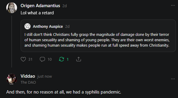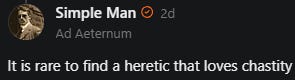 Yet another example is when someone neglects to treat degeneracy properly, specifically in the disclaimer-esque ‘I just want to preface that I don’t want to force my lifestyle on anyone’ sense. As with the vast majority of the human experience, degeneracy overlaps, synergizes, etc. between itself and affects other domains. If you want something you don’t like to be properly treated, you have to do the same for most or all the rest of it in that area regardless of what you’re “okay with.” The only fact for this that’s consistently even moderately effective is the acceptance and championing of religious law, and given how bans/restrictions on things from drugs to contraception are at present basically impossible, this includes shunning and shaming those who act against it. By far the most coherent and correct one is Christianity.