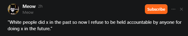 Naturally, one resolves that progressive politics are all just power with a whole false reality of pretenses. Subordinates are necessarily dismissed—the ‘okay but we’re gonna keep doing the same thing’ response to everything—while anyone who’s any kind of ‘threat’ gets the in-person Cringe Compilation & Offensive Stereotype Validation package.