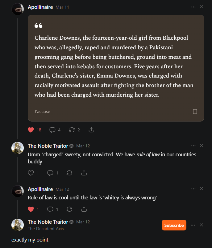 Yet another reality is that the principle of ‘don’t mess with children’—when not used against acceptable targets like Donald Trump or the Catholic Church—already makes you a Nazi and archaic and conservative and reactionary and bigoted and [insert bad word here] and [insert bad word here] and [insert bad word here]. Combine that with how race wins over sex in the Pantheon of Victimhood and Diversity: ‘Muslim man > underage White girl’ is a favorite fetish of the United Kingdom’s governmental culture as the grooming gangs show (retrieved 4/8/2026), and succinctly explains the dubiousness of the historic Leo Frank case here (retrieved 4/10/2026):