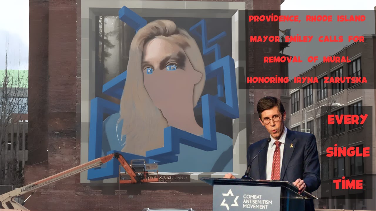In Providence, Rhode Island, a massive new mural in what’s called the “Creative Capital” has caused intense controversy.1 The mural, located on the backside of The Dark Lady, a well-known gay club in downtown Providence (especially to the mayor), depicts Iryna and displays a dedication to her.