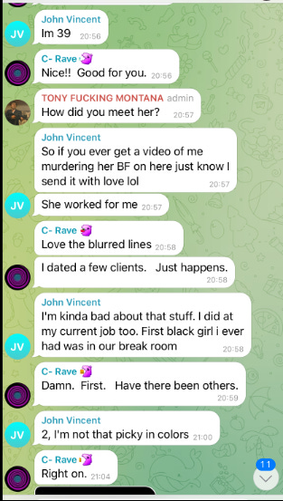 Moss made references to International travel throughout his time on Telegram, either to pursue affairs with women in his community, or to encourage minors to torture animals. In the following screenshots, he can he seen claiming direct, hands on involvement in such zoosadist activity;