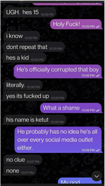 In his time on Telegram, Moss embarked on four affairs that we are aware of; A woman called Samantha, Katie, Sehreen Ferdous and Alondra Gutiérrez. There may be others we do not know of. Ferdous is a zoosadist based in Bangladesh, and Moss’s most recent Internet relationship up until Gutiérrez. Whilst less active now on Telegram, she used TikTok to broadcast her relationship and later feud with Moss. She does not appear to have made any public statements following the death of Moss.
