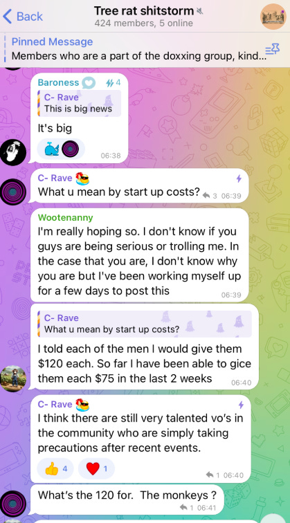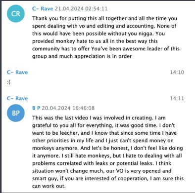 Moss will be forgotten. Telegram itself will eventually forget him. A core few still remain from the Apes Cage era, the early days of primate zoosadism on Telegram. The overwhelming majority are relative newcomers. In death, he has become the subject of seemingly endless infighting. The production of content has stagnated, with inside players hinting at videos still being produced but closely guarded and kept out of circulation. This is in contrast to a year ago, when commissioners and VO’s openly interacted in groups, taking video suggestions, whilst doing business in pay only groups. When the current situation changes, and we see an uptick in video production, there will likely be a new Moss, and a new generation of perverts and weirdos with no relation to those who came before, and little interest in learning from their mistakes.