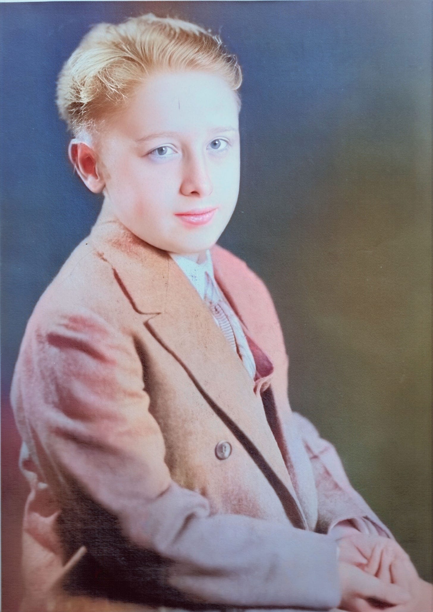 There is a stillness to him here that speaks of interior discipline. His hands rest where they have been placed. His expression is charming, warm, and unhurried. Nothing in the image suggests indulgence or excess. Instead, it reflects a childhood shaped by order, routine, and the expectation that one should carry oneself properly, even when young, while still maintaining happiness.