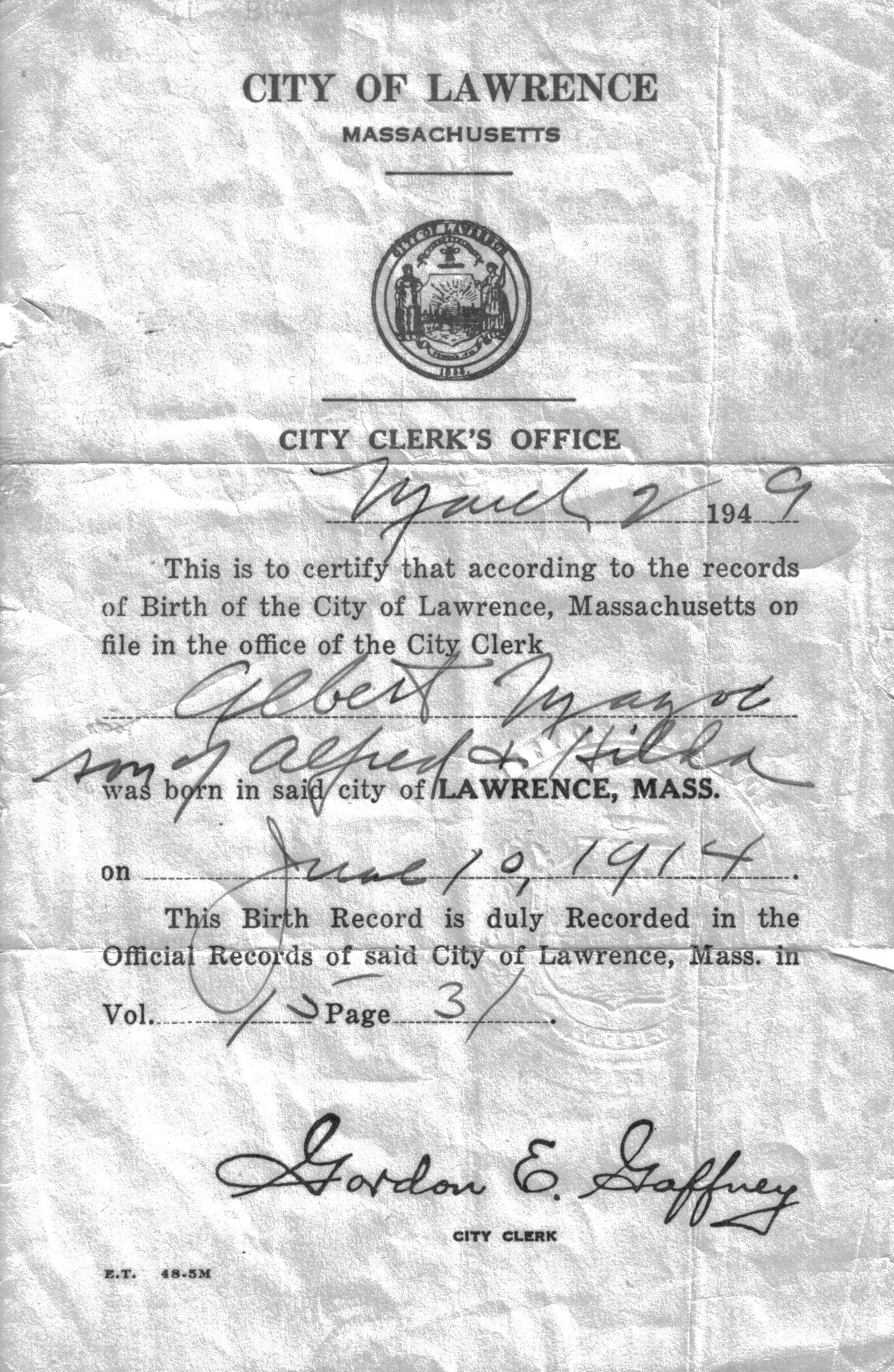 Albert Alberino Morris Mazo was born on June 10th, 1914, entering the world at a moment when industry, migration, and uncertainty defined daily life in the Merrimack Valley. The mills still governed the rhythm of the region, their whistles marking the hours, their labor shaping families and futures alike. He was born into a household formed by work and discipline, the son of parents whose lives were bound to machinery, faith, and endurance.