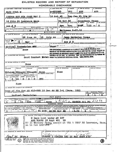 After Opal and Albert were honorably discharged, they returned to Albert’s home, leaving behind the structures of military life and the long years of movement and uncertainty. Their service had concluded with distinction, and what had been demanded of them was fulfilled.