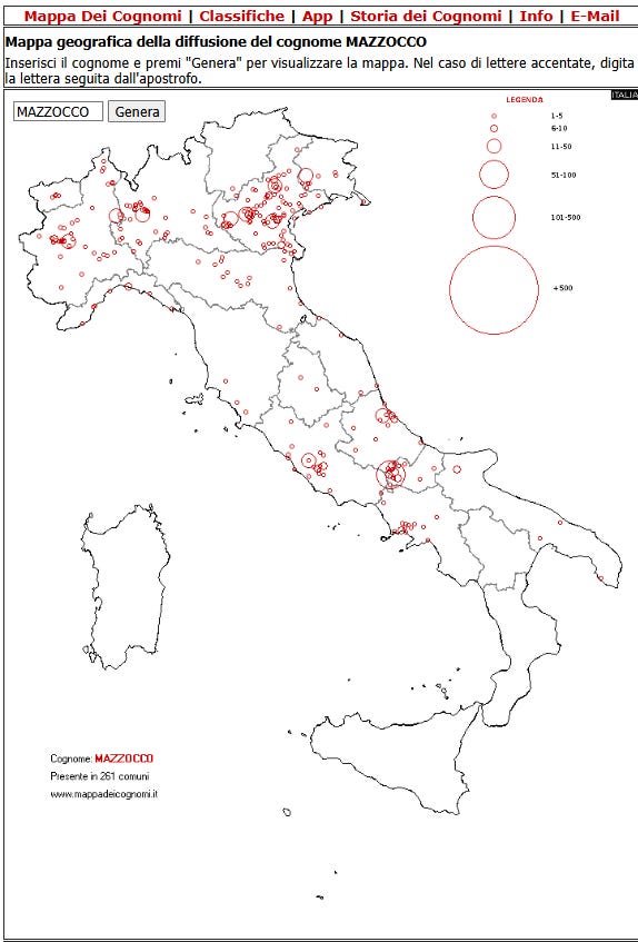 Translation: Surnames derived from “mazza” are for the most part nicknames or occupational names.