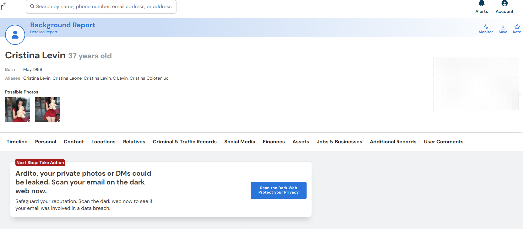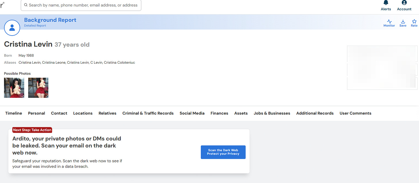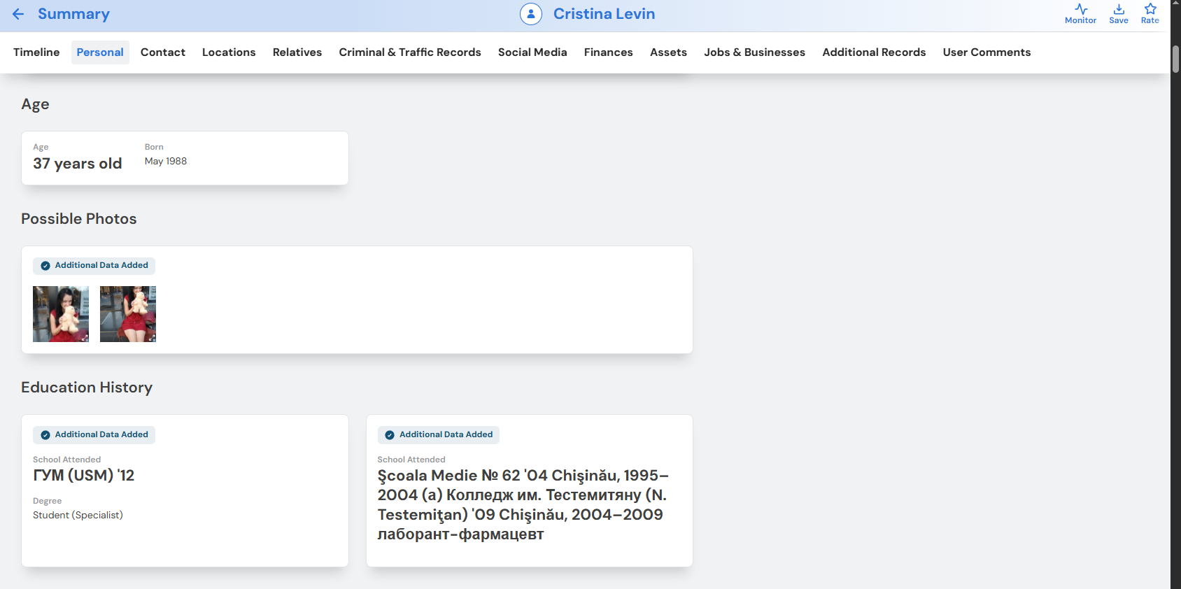 In her Truthfinder background check, it also listed Coloteniuc as her surname. In fact, it’s actually her maiden name (I’ll get to Levin in a moment). Cristina, as proven by the screenshot below, had been born and raised in Moldova.