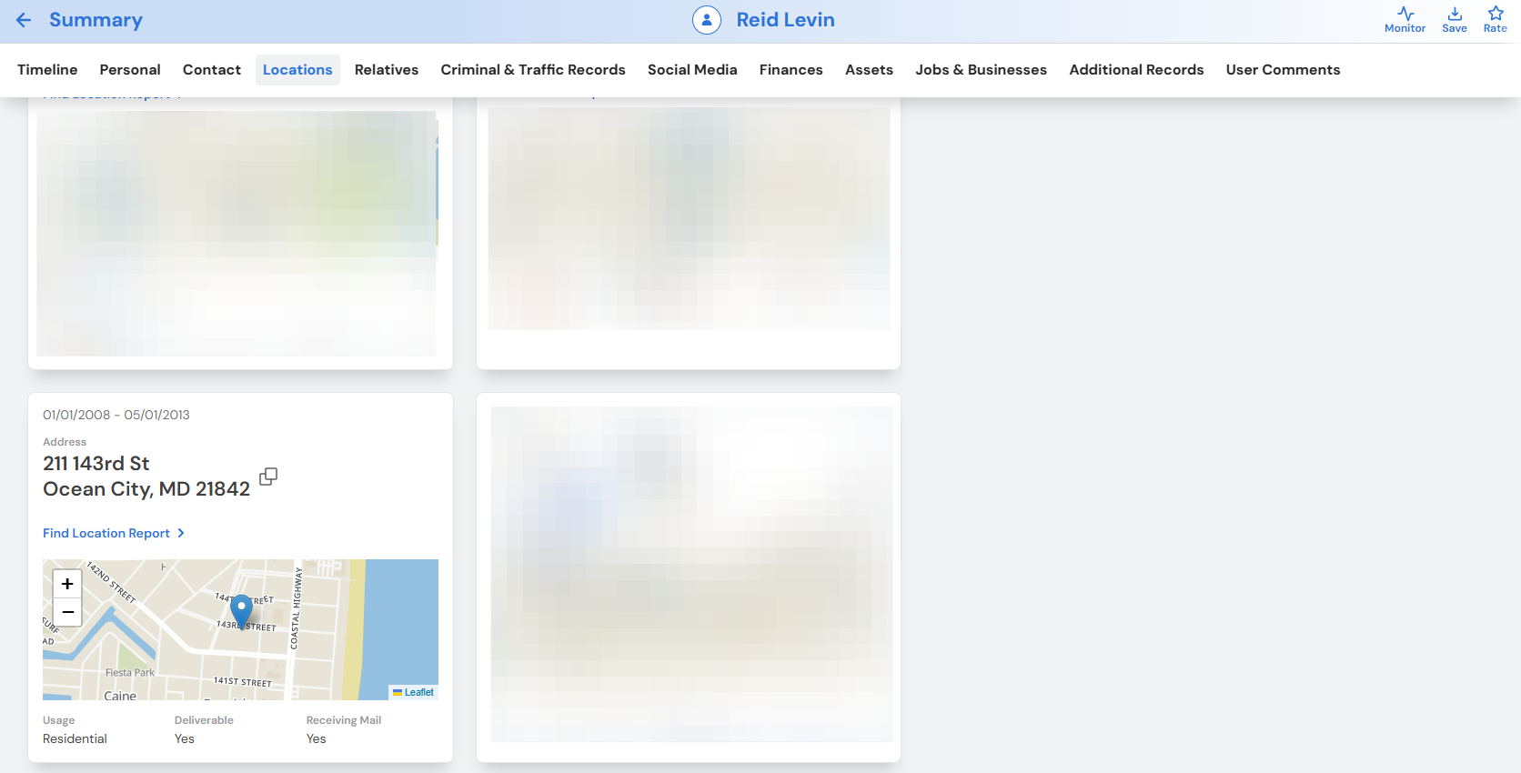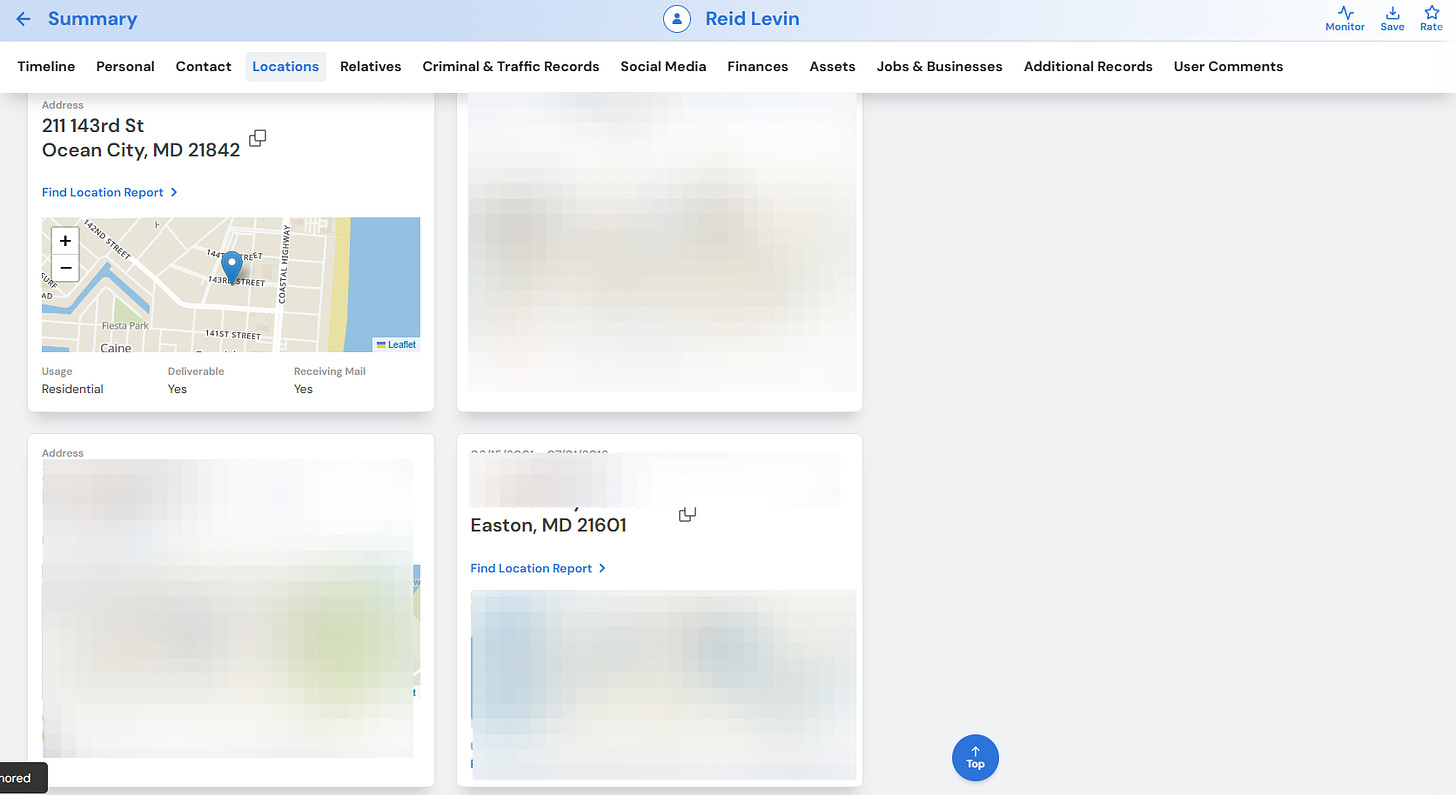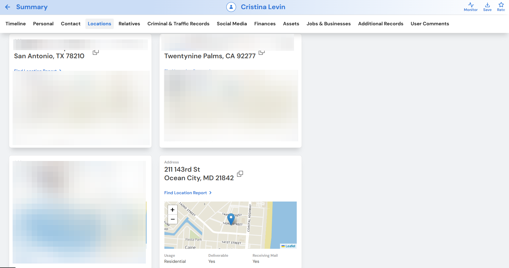 Also, I looked over the old addresses and I saw Cristina’s past residence at 211 143rd St, Ocean City, MD, was also shared by a man named Reid Levin.