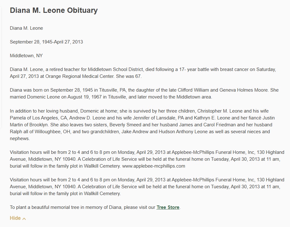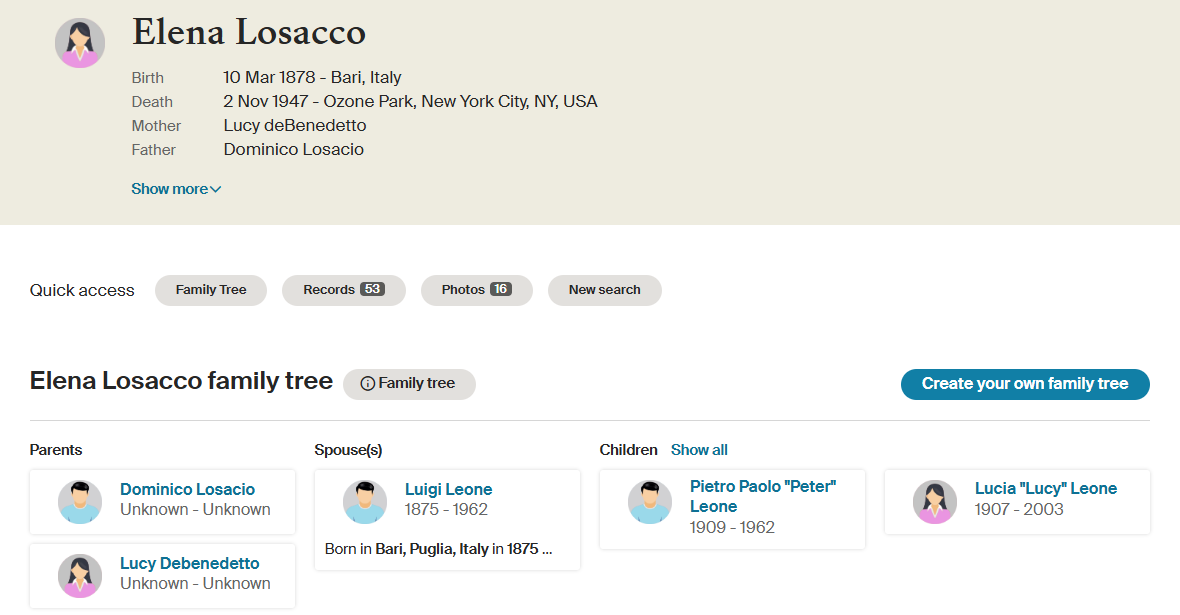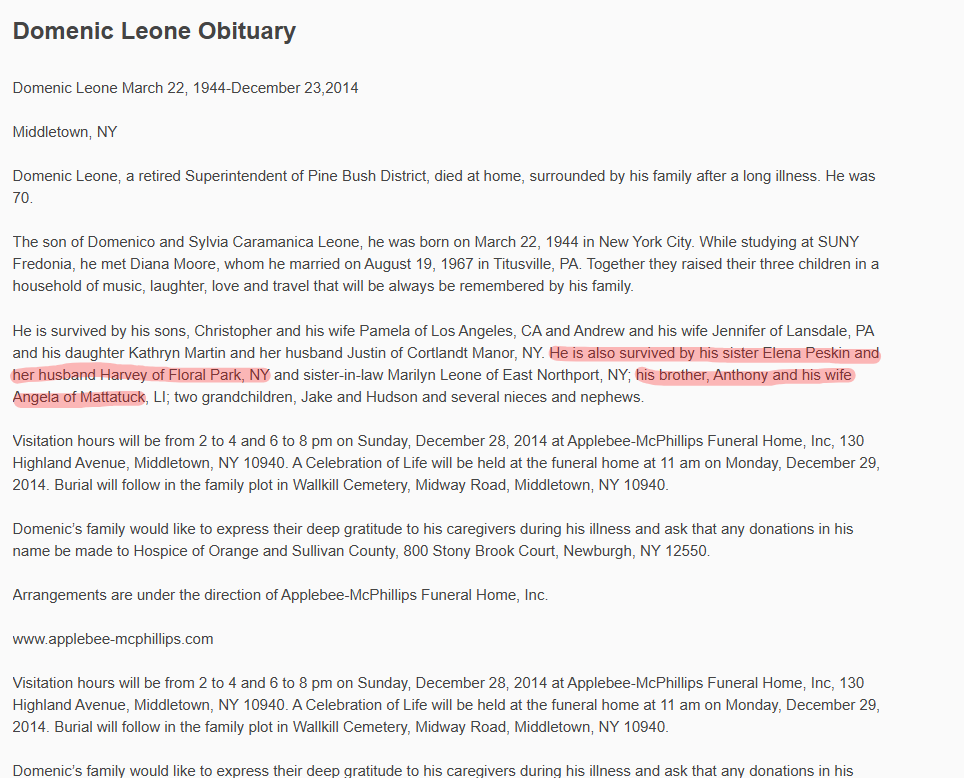 All sources I will be using are easily attainable through public means (including obituaries, social media statements, etc.). Taking a closer look at Jake’s family tree which focuses on his reported Italian family heritage, the following last names can be seen in his direct lineage: