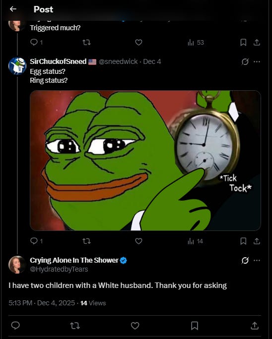 This is so whole discovery is so infuriating. Jake has been one of the most vocal people on race mixing in our sphere, almost more than I have. However, when I called out race mixing, I did it to prevent further miscegenation and to make sure our blood remained pure. When Jake did it, it was to virtue signal so you wouldn’t think that he would ever race mix. But he did.