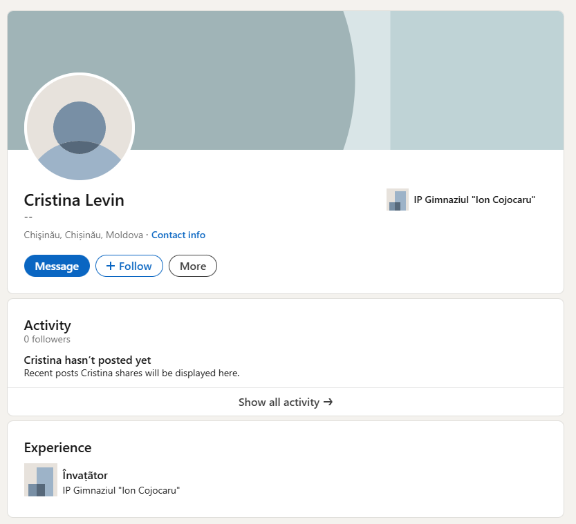 Going back to Truthfinder (seen below), I was able to find out that Cristina also attended the following schools in Moldova: