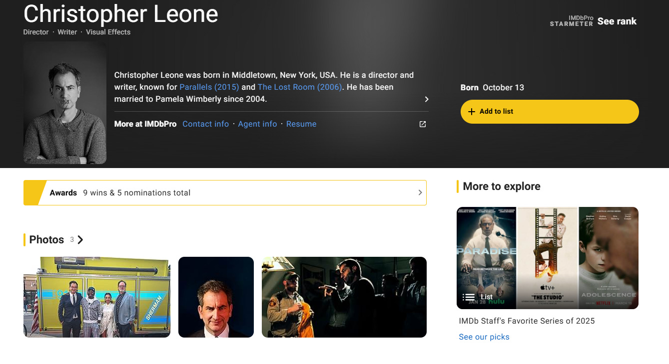 After the Last Room was canceled, Christopher Leone began working on a limited series that lasted 12 episodes, Bar Karma (2010-2011). He personally directed two episodes, Hack Job & Man Walks Out of a Bar. From IMDB:138
