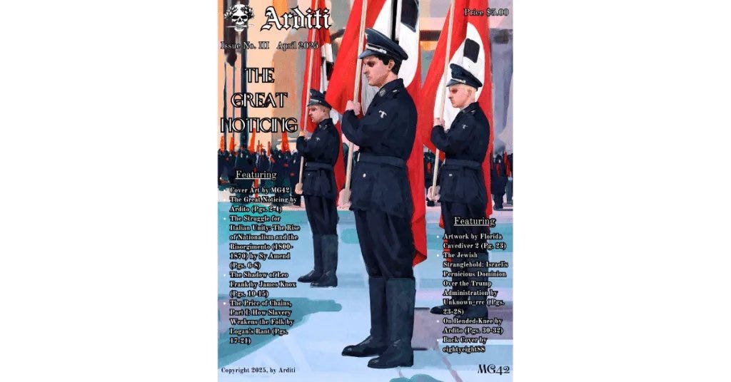 It was so influential that upon the release of the second issue of Arditi magazine, Substack decided to indefinitely suspend Arditi and my profile. Undeterred, I decided to release the second issue of Arditi for free to the public. The second issue spread like wildfire with more than 15k people viewing the magazine.